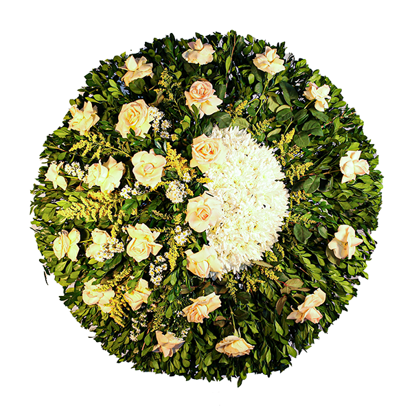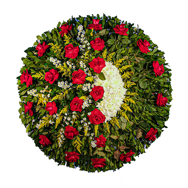 com lindas coroas ou arranjos fúnebres